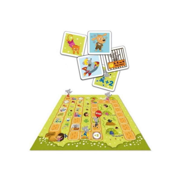 En début de partie, tu tires au sort ton arrivée que tu gardes secrète. Les arrivées sont différentes, plus ou moins éloignées du départ et peuvent changer de joueurs en cours de partie. Tu devras être une souris chanceuse et astucieuse pour remporter cette course, en évitant les pièges et en faisant les bons choix. Mais attention aux chats qui n’ont qu’une idée en tête : te renvoyer au départ.