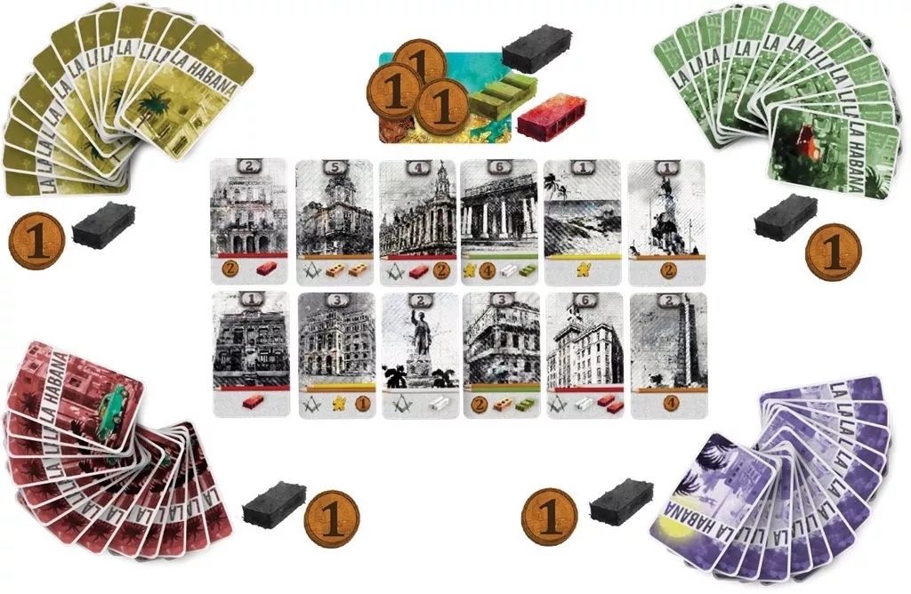 Dans le jeu La Habana, les joueurs vont acquérir pesos, matériaux de construction, engager des ouvriers et des architectes, voire collecter des impôts et enrôler des voleurs pour entraver les constructions d’édifices adverses, ou encore profiter du temps présent et faire une petite sieste à l’abri de leur garde du corps.