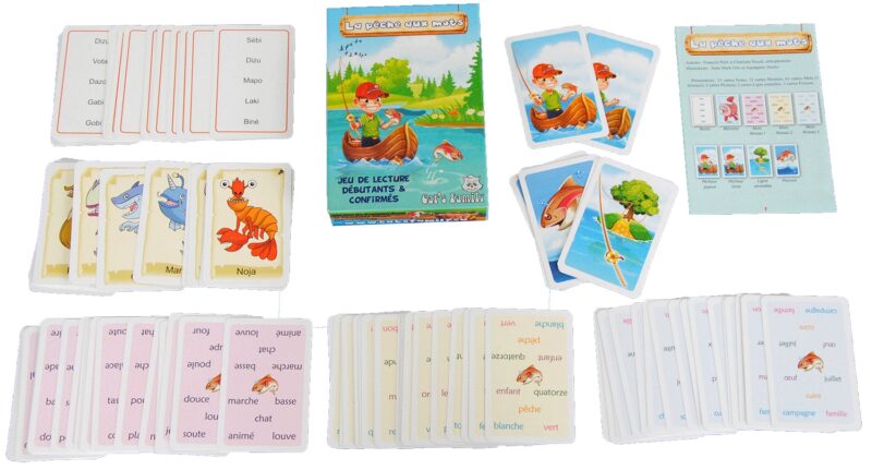 La pêche aux mots… est un jeu de cartes, dynamique et très convivial, mêlant lecture, attention visuelle, concentration et rapidité. Les mots sont-ils les mêmes ou sont-ils différents ? Qui du plus rapide ou du plus observateur fera la plus grande pêche aux mots ?