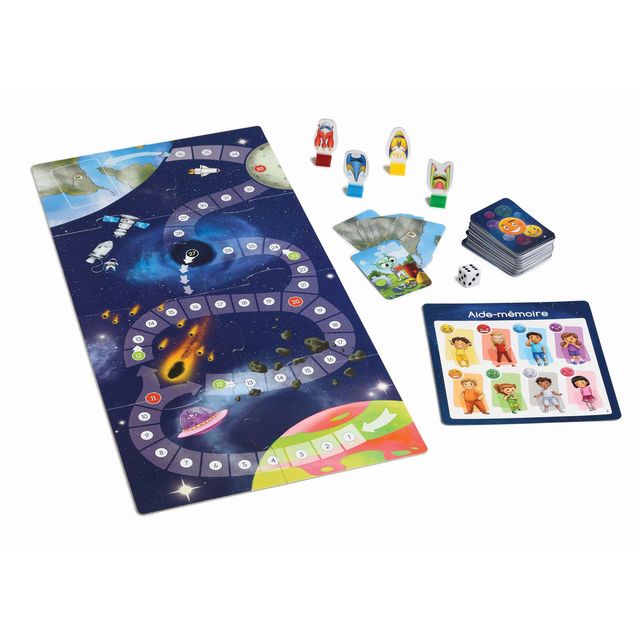 Tu dois montrer aux extraterrestres comment comprendre les émotions, car ils ne savent pas ce que c’est. Aide-les à quitter la planète Padémo pour se rendre sur la Terre et y vivre leur première émotion ! Avance en lançant le dé, prends des cartes et devine les émotions ressenties par les personnages illustrés. La planète des émotions est conçu pour aider les enfants de 3½ ans à 7½ ans à comprendre les émotions ressenties par plusieurs personnes dans une grande variété de situations, et ainsi favoriser le développement de l’empathie.
