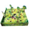 Contenu du jeu : 1 plateau, 8 arbres, 24 tuiles Objets, 20 étoiles, 108 jetons Baies, 4 boutons, 1 sablier, 4 petits blocs en mousse, 10 cartes lutins, 1 figurine de sorcière, 1 sac en tissus, règle du jeu.
