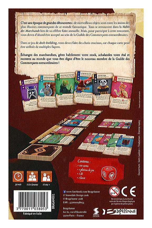 Bienvenue dans la guilde des commerçants extraordinaires ! La Vallée des Marchands est un jeu de deck-building où vous devez faire des choix cruciaux, car chaque carte peut être utilisée de multiples façons… A partir de 12 ans.