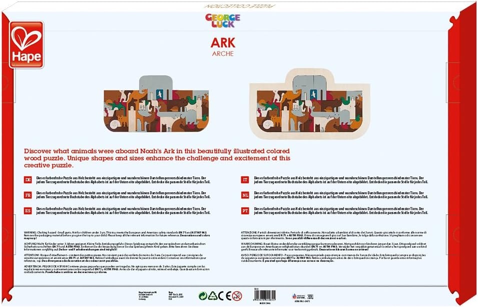 George Luck Puzzles crée et produit des puzzles en bois de qualité depuis environ 30 ans. Leur design innovant et imaginatif fascine à la fois les enfants et les adultes. Ces puzzles ont été largement reconnus comme étant à la fois amusants et éducatifs. Les puzzles George Luck sont de beaux objets de collection que les familles chérissent depuis des générations. Aujourd’hui distribué par Hape, la gamme a préservé sa tradition d’excellence grâce à des matériaux certifiés durables et des produits de finition à base d’eau sans danger pour les enfants.