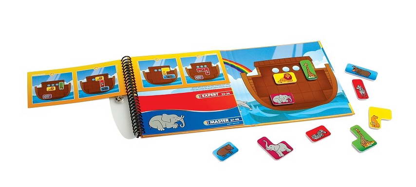 Votre mission? Embarquer mâles et femelles à bord de votre arche pour les sauver du déluge qui menace le continent. Après avoir choisi un défi parmi les 48 proposés, positionnez les premières pièces comme indiqué. Puis, à vous de placer les suivantes afin que chacun trouve se place à l’intérieur du bateau, à côté de son compagnon et la tête en haut pour supporter le long voyage en perspective!