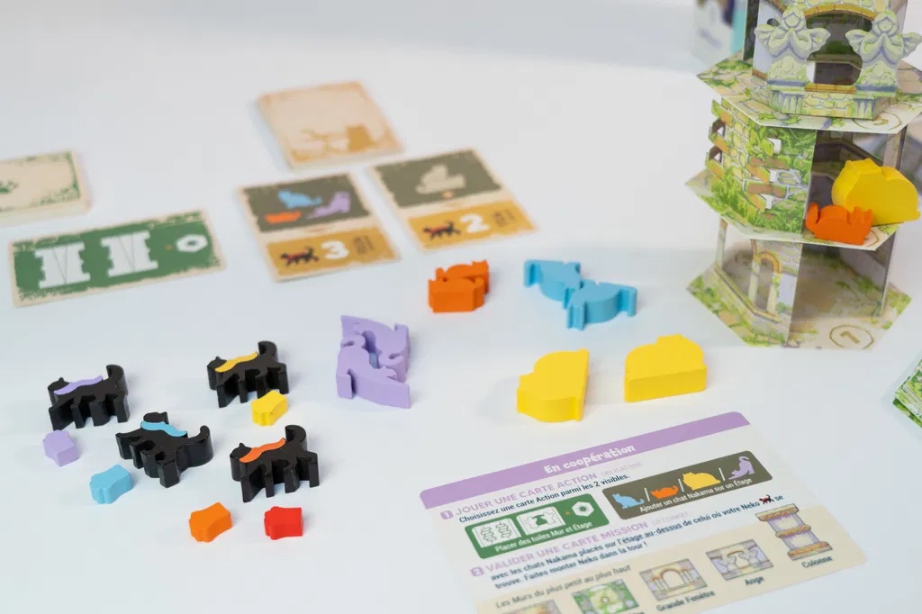 Le Chat et la Tour est un jeu de dextérité et de stratégie coopérative où votre objectif est de faire grimper Neko, le chat noir, sur une tour instable construite avec des tuiles Mur et Étage. Les joueurs collaborent pour réussir des missions tactiles : placer des chats colorés selon des objectifs précis et faire avancer Neko d’un ou plusieurs étages. Chaque étage franchi offre un moment de tension et de satisfaction, mêlant équilibre fragile, manipulation minutieuse et coopération. Un jeu tactile, poétique et immersif, parfait pour les amateurs de chats, défis de dextérité et expériences ludiques originales.