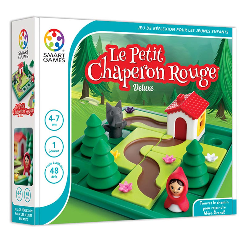 Mais attention ! Le loup rode. Jouez également avec lui et parvenez à résoudre 24 autres défis en créant deux chemins différents vers la maison de Mère-Grand : l’un pour le Petit Chaperon Rouge, l’autre pour le loup, qui arrivera toujours le premier…