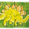 Observation et chance : on pioche et assemble des cartes pour reformer les dinosaures. Il y en a 9 à reformer dans des formats différents : le tyrannosaure, le tricératops, le spinosaure, le diplodocus… C’est rigolo, certains sont tout en long, d’autres tout en hauteur… Certains vivent sur terre, d’autres volent, d’autres encore vivent dans la mer. Le petit jeu des Dinosaures est idéal pour les tout-petits, puis il peut évoluer avec l’âge des enfants grâce à deux règles supplémentaires. Convient aussi pour jouer seul à faire des mini-puzzles.