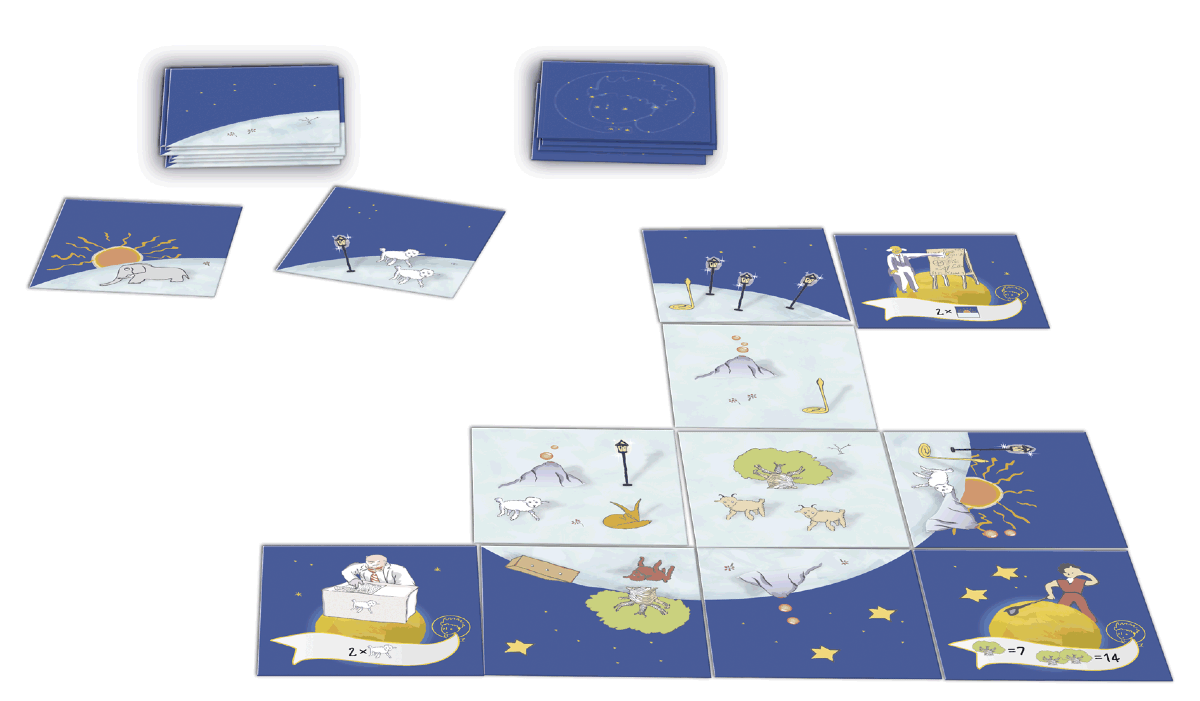 « S’il te plait, fabrique-moi une planète. »  Le Petit Prince est un vrai jeu tactique et hautement interactif, jouable par les adultes comme par les enfants. Chacun y construira une planète et choisira les objectifs qui lui rapporteront le plus de points en fonction de l’aménagement de sa planète. Bien entendu, tout serait simple si vos choix n’étaient pas limités par ceux de vos adversaires…