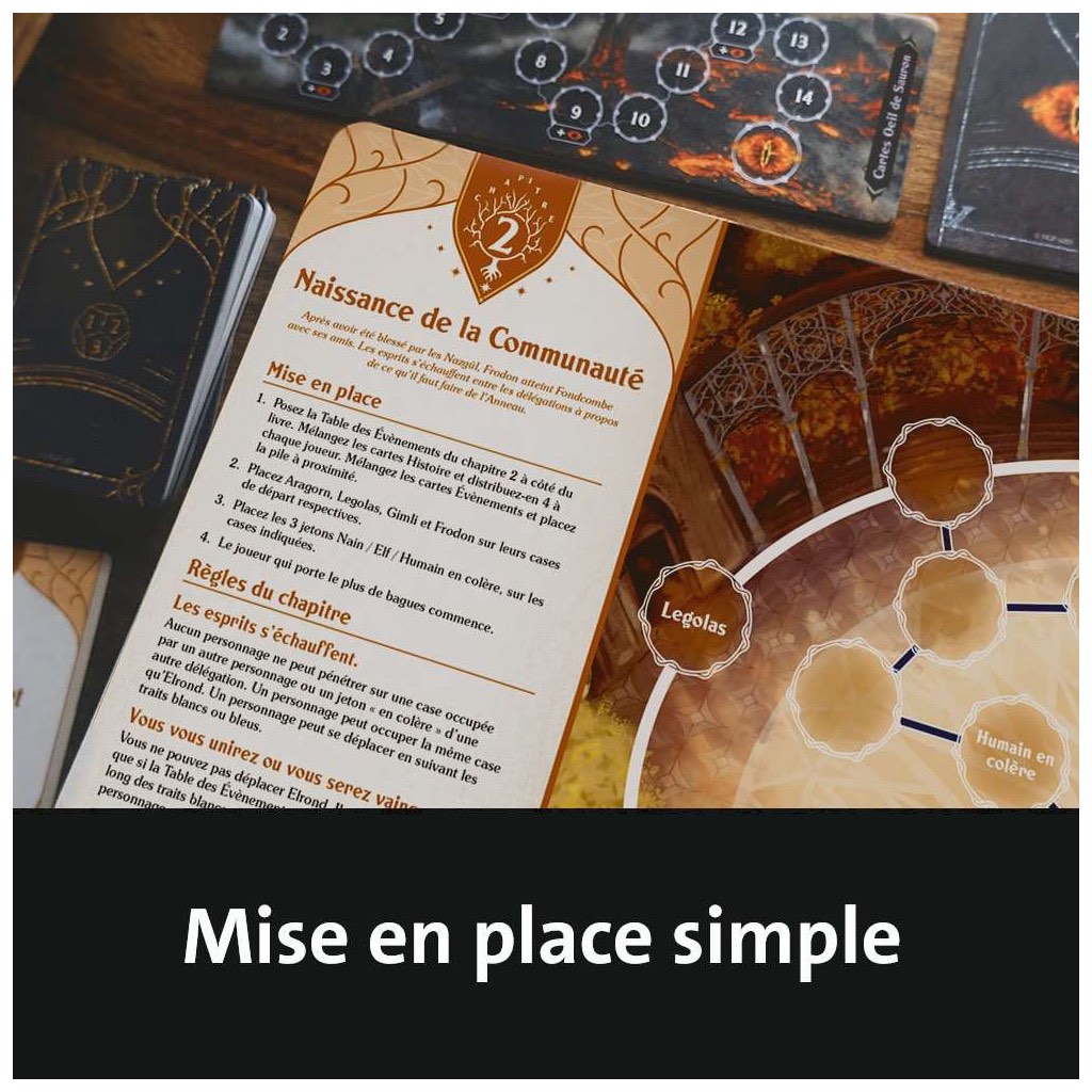 Huit chapitres pour vaincre Sauron… Le Seigneur des Anneaux est un jeu d’aventures coopératif dont le plateau se présente sous forme de livre. Dans ce jeu de société, les joueurs vont tenter ensemble de détruire l’anneau unique en revivant les grands moments de la célèbre trilogie.
