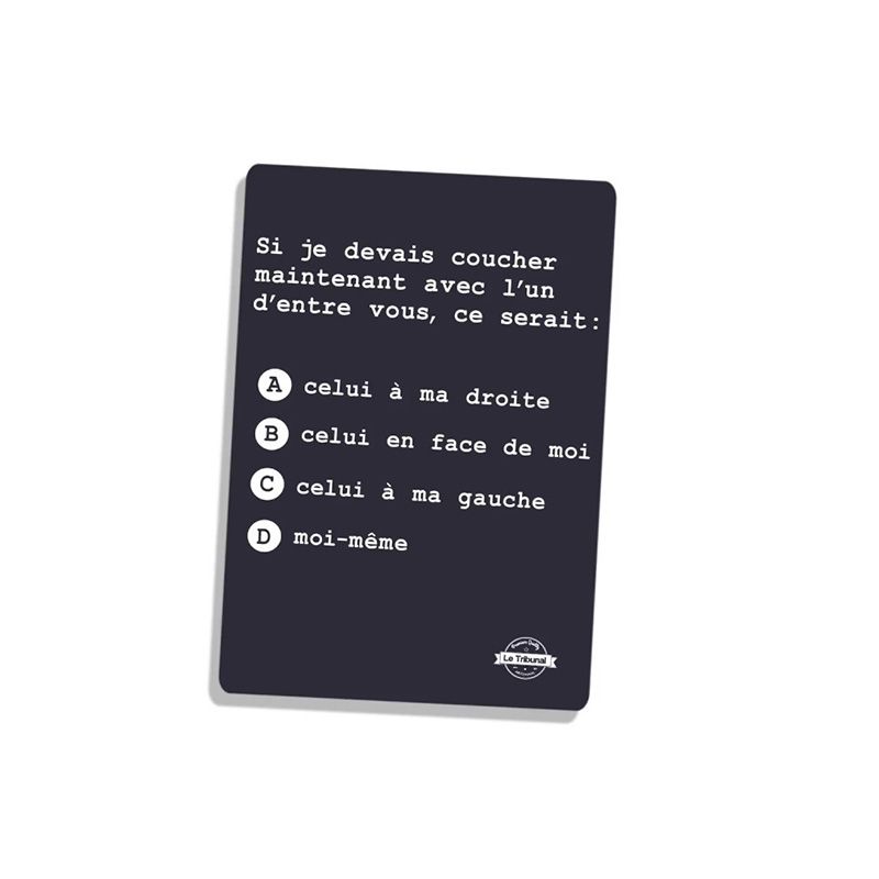 Le Tribunal est un jeu d’ambiance fun où il vous faudra y jouer entre adultes ayant l’esprit ouvert et qui aiment rire de tout ! Dès 16 ans.