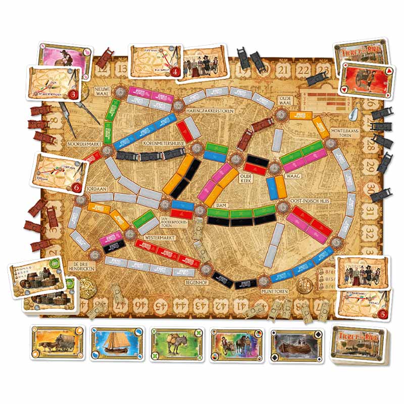 Bienvenue au 17e siècle, au beau milieu du Gouden Eeuw ! Une version compacte et rapide des Aventuriers du Rail à Amsterdam.