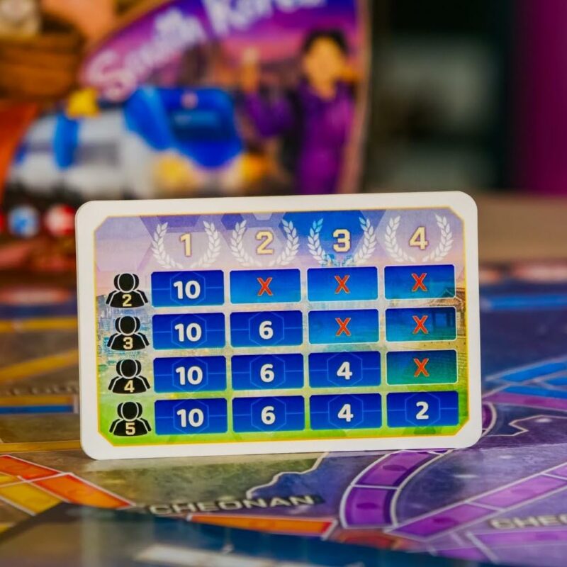 La carte de la Corée du Sud (verso du plateau) propose une répartition unique des itinéraires. Utilisez au mieux vos bonus de train express pour prendre les routes les plus intéressantes et obtenir les meilleures positions sur le tableau des provinces.