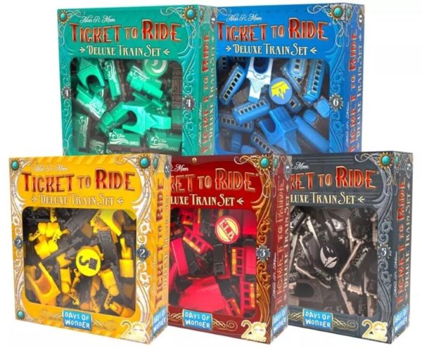 Rendez inoubliables vos parties d’Aventuriers du rail à l’occasion du 20ème anniversaire du jeu avec ces Sets de trains Deluxe qui égayeront vos plateaux de jeu.