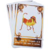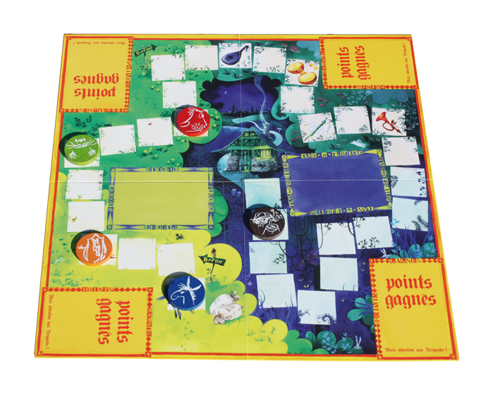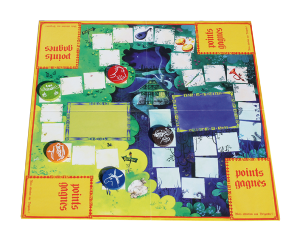 Contenu : 68 grandes cartes, 1 plateau, 5 pions en bois, 1 livret avec le conte illustré et la règle.