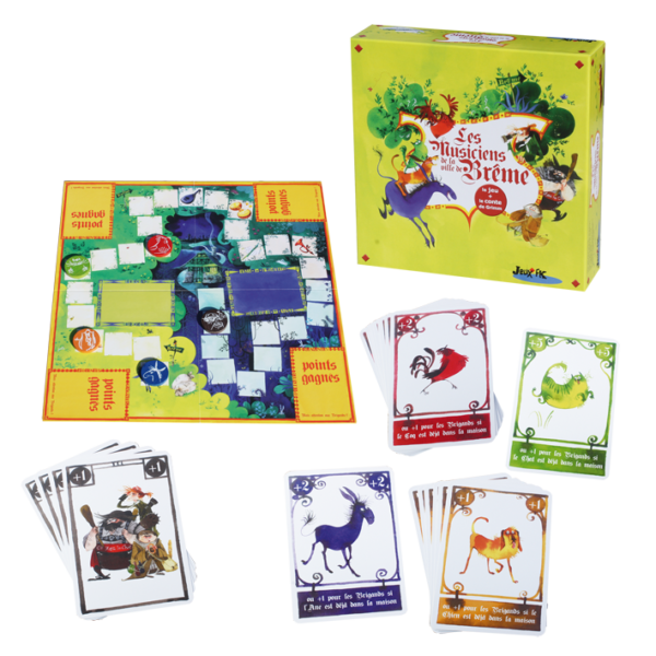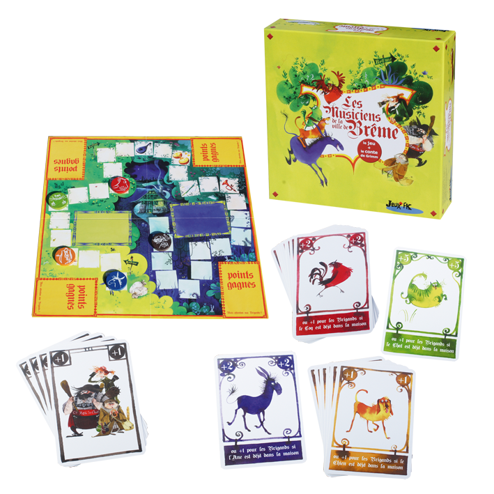 Âne, Chien, Chat et Coq retrouvent vigueur et partent à Brême pour devenir musiciens. Les joueurs vont devoir les aider tout en se méfiant des brigands !
