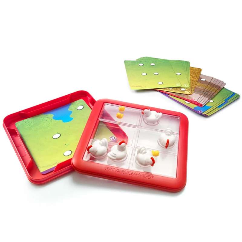 Cette version Junior des Poules ont la Bougeotte contient 48 défis plus faciles et des poules et poussins en 3D.