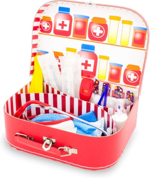 Mallette Hôpital… Cette jolie mallette de docteur contient tout ce dont un bon docteur a besoin pour soigner les petits bobos.