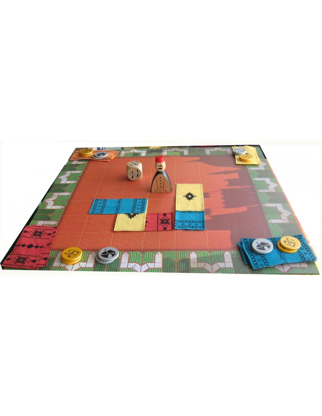 Chaque joueur est un marchand qui essaie de supplanter les autres. A tour de rôle, chacun lance le dé puis déplace Assam (pion géant), l’organisateur de la vente. Si Assam s’arrête sur un tapis adverse, le marchand doit payer une dîme à son propriétaire avant de poser un de ses tapis sur un espace adjacent. Quand le dernier tapis est posé, on totalise les tapis visibles et la somme détenue par chacun des marchands : le meilleur l’emporte !