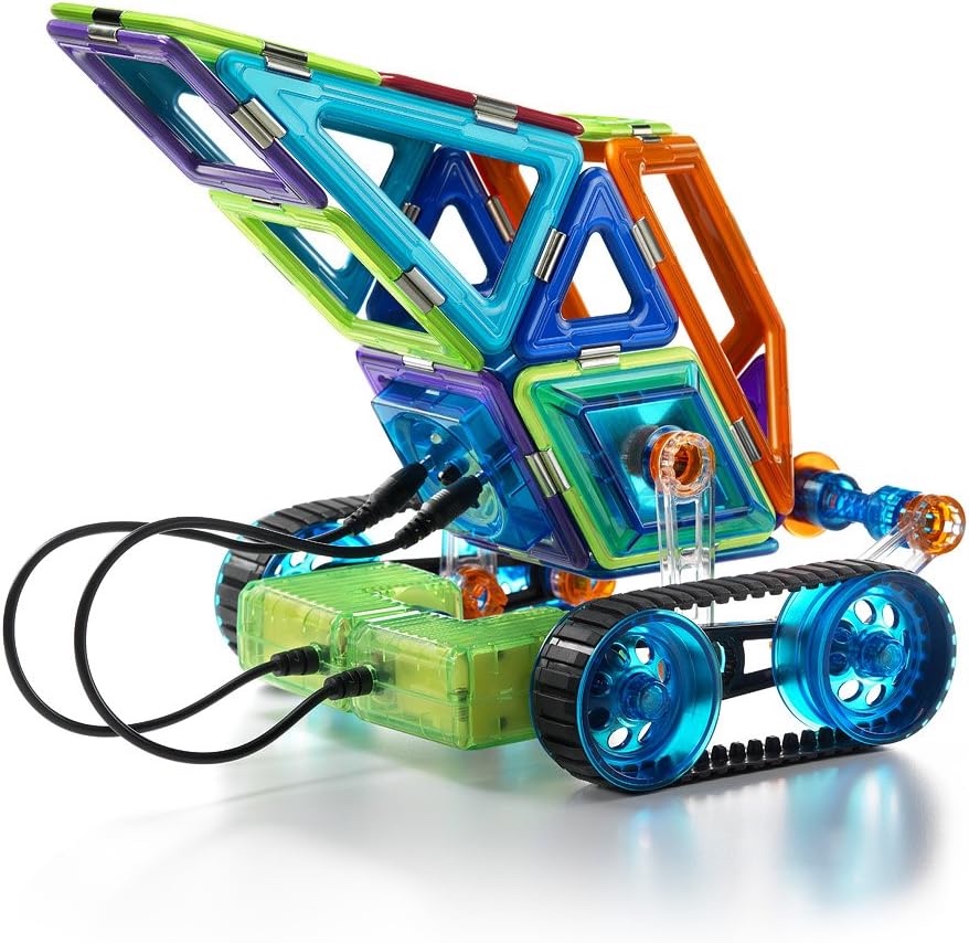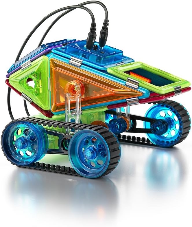Le Robot Jouet Geosmart Mars Explorer combine les moteurs et les roues RC inclus avec la grande variété de formes géométriques à connexion magnétique. Les enfants peuvent construire et reconstruire toutes sortes de conceptions de machines et devenir le tout premier martien doté du pouvoir de la géométrie et de la construction créative. Il comporte même des lumières LED pour explorer la nuit ! Commencez avec les conceptions suggérées – ou, explorez votre propre créativité pour inventer la machine ultime. Vibrant, extrêmement robuste, facile à contrôler et incroyablement polyvalent, Mars Explorer est une expérience imaginative brillante qui ne manquera pas de susciter une passion pour l’éducation STEM ( Sciences, technologie, ingénierie, mathématiques). Entièrement compatible avec tous les autres ensembles Geosmart. Matériaux de haute qualité pour une expérience de construction, d’apprentissage et de jeu exceptionnelle.