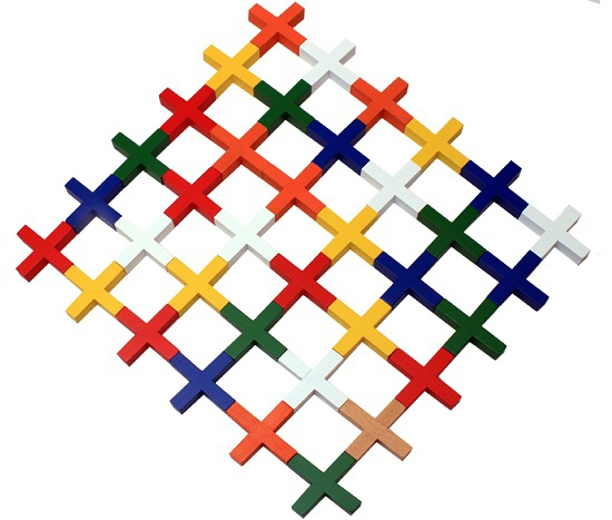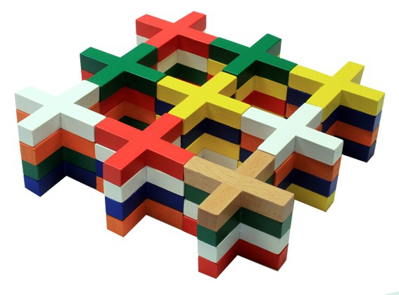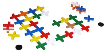 Contenu : 36 Pièces en bois, 5 Témoins de couleur en bois. 1 Règle du jeu en 7 langues (F, GB, NL, D, I, E, P).