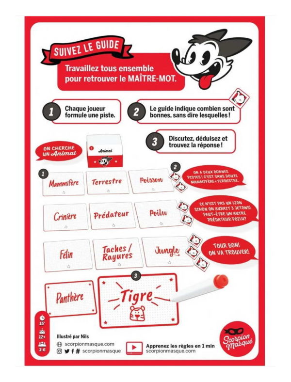 Travaillez tous ensemble pour trouver le maître-mot : une équipe de chercheurs formule chaque manche une série de pistes pour trouver la nature du maître-mot. Le guide, qui connaît la réponse, peut uniquement indiquer combien sont bonnes, sans dire lesquelles ! Un jeu hautement interactif, malin, rapide, addictif.
