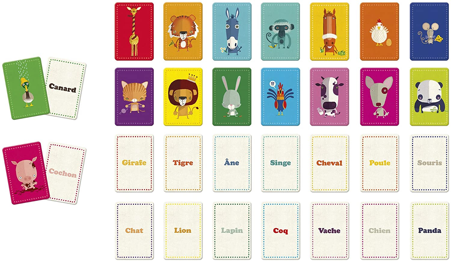 Coloré avec des belles illustrations d’animaux, ce jeu de cartes sera parfait pour apprendre à suivre des règles simples, à développer la mémoire et la concentration de l’enfant. Idéal pour les débutants en lecture.
