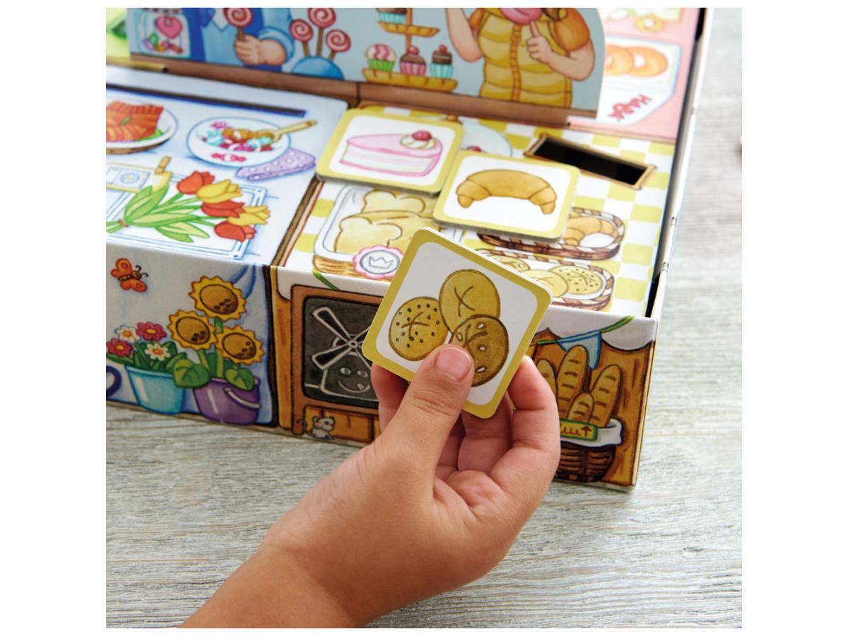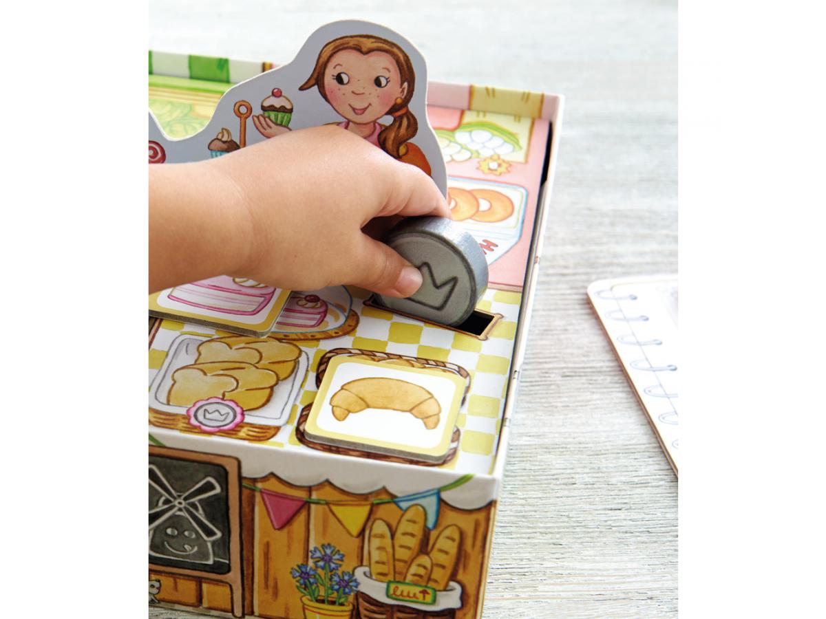 C’est parti pour aller faire les courses au marché. Chacun d’entre vous a une liste de courses indiquant quatre choses à acheter. Mais où trouve-t-on du pain ? sur quel étal vend-on du fromage ? Combien coûtent les chaussettes et reste-t-il encore de délicieuses fraises ? Les enfants peuvent aussi jouer librement avec les accessoires et essayer de nombreux jeux de rôle.