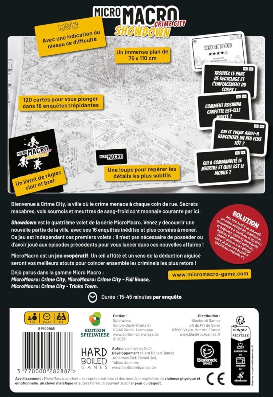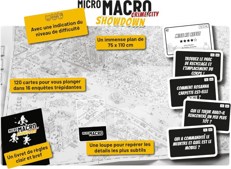 Avec Showdown de la série Micro Macro Crime City, venez découvrir une nouvelle partie de la ville, avec ses 16 enquêtes inédites encore plus corsées.