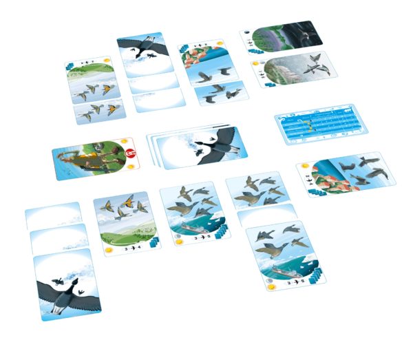 Dans Migrato… Vous devrez gérer et guider la migration de cinq espèces d’oiseaux. Cependant, tous n’ont pas les mêmes habitudes de vol et ne parcourent pas la même distance. Il faudra donc faire preuve d’adaptation et de stratégie pour poser les bonnes cartes au bon moment, faire attention aux obstacles, et garder un œil sur le jeu de l’adversaire… Bon voyage !