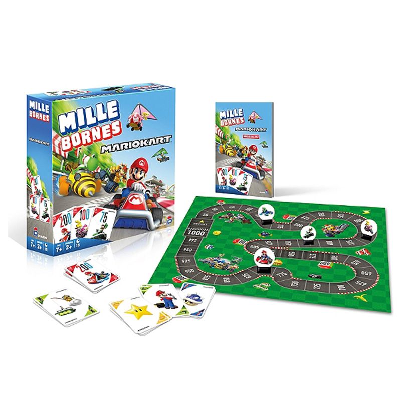 Mille Bornes Mario Kart, rejoins Mario, Luigi, Yoshi et Peach sur le circuit et vis une course endiablée ! Franchiras-tu la ligne d’arriver en 1er ? Dès 7 ans.