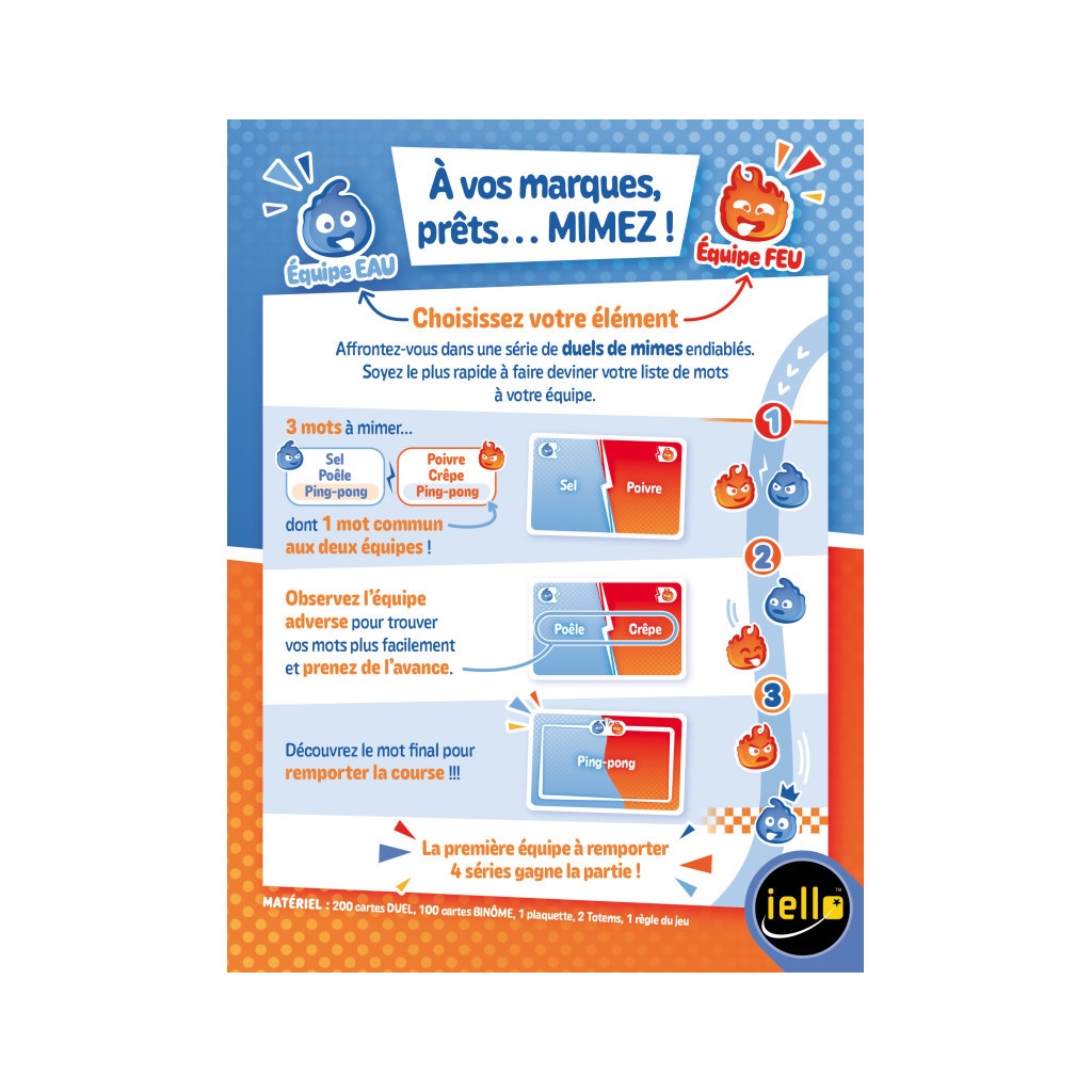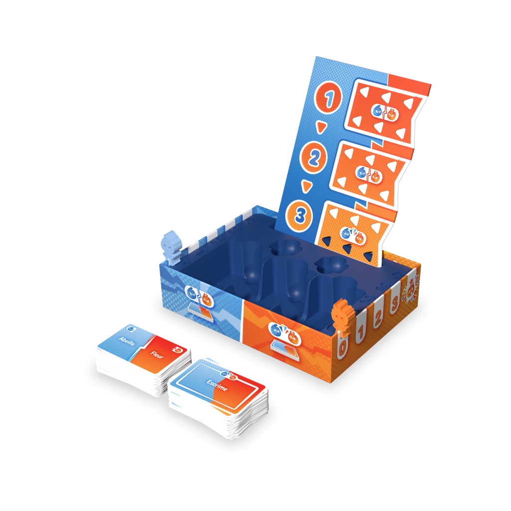 Contenu : 200 cartes Duel, 100 cartes Binôme, 1 plaquette, 2 pions Totem et 1 règle du jeu.