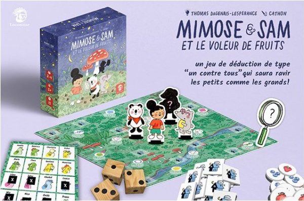 Nos amis Mimose et Sam sont une fois de plus appelés en renfort afin de démasquer le ou la coupable. Mimose & Sam et le Voleur de Fruits est un jeu de déduction facile d’accès de type “un contre tous” pour les jeunes enfants comme les adultes.
