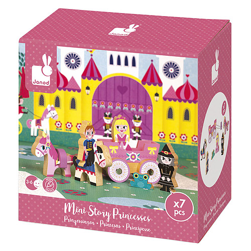 Il était une fois, dans un pays magique, vivait la plus belle des Princesse … Avec Mini Story Princess de Janod ! Créez un superbe univers et invente les plus beaux contes de fées, avec ses figurines miniatures. Tu pourras compléter ce coffret rempli de magie et de bonheur avec les autres boîtes de la Collection Mini Story.