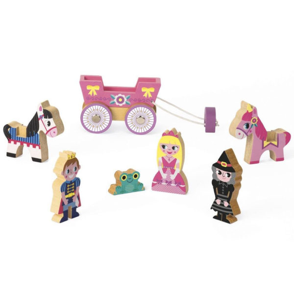 Contenu : 1 prince, 1 princesse, 1 sorcière, 1 grenouille, 1 licorne, 1 cheval, 1 carrosse.