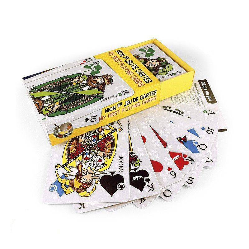 Mon 1er Jeu de Cartes, idéal pour jouer seul ou en famille. Grâce au graphisme adapté aux enfants, ils apprendront à jouer comme des grands ! Inclus 5 règles de jeux de cartes mais les possibilités sont illimitées.