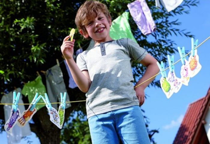 Chaque joueur choisit une couleur et se munit des 8 pinces à linge correspondantes. Les 2 cycles de lavage peuvent commencer !