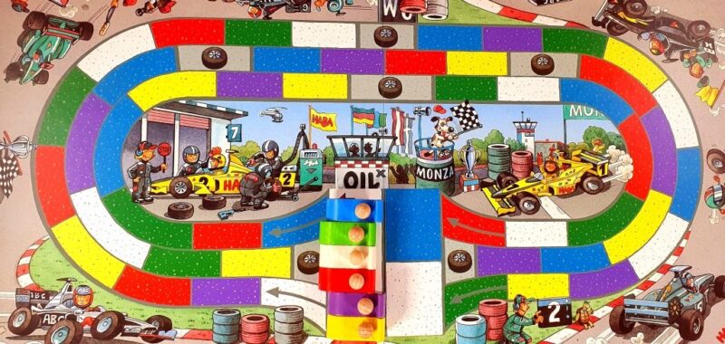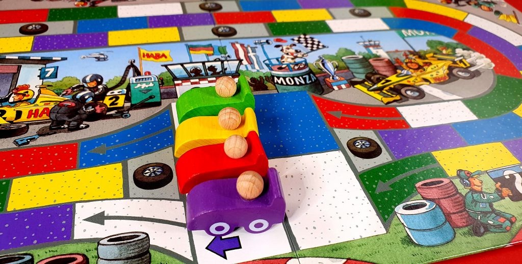 Monza est un premier jeu d’enfant tactique autour d’une course automobile : 6 voitures de course en bois colorées sont au départ pour la grande course.