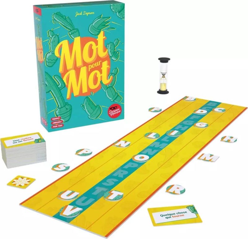 Mot pour mot… Voici un véritable jeu d’ambiance et de lettres qui se joue en équipe. Sur le principe du tir à la corde, ramenez les lettres vers vous afin de gagner !