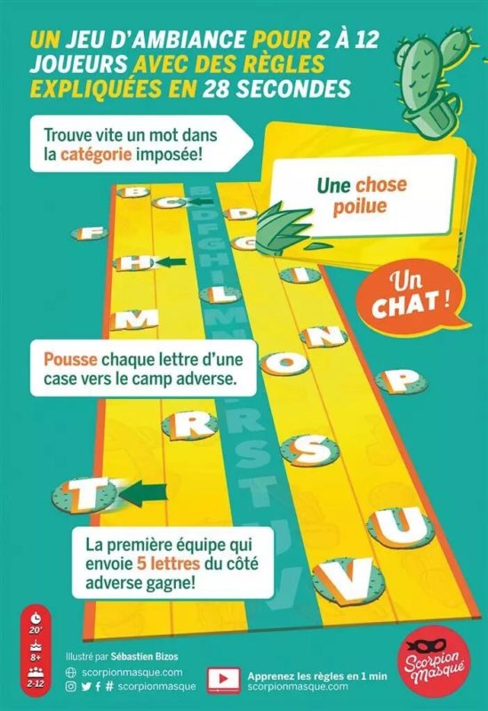 Points forts : Jouez en équipe. Plus un party game qu’un jeu de lettre. S’explique en 18 secondes (plus ou moins 3 secondes).