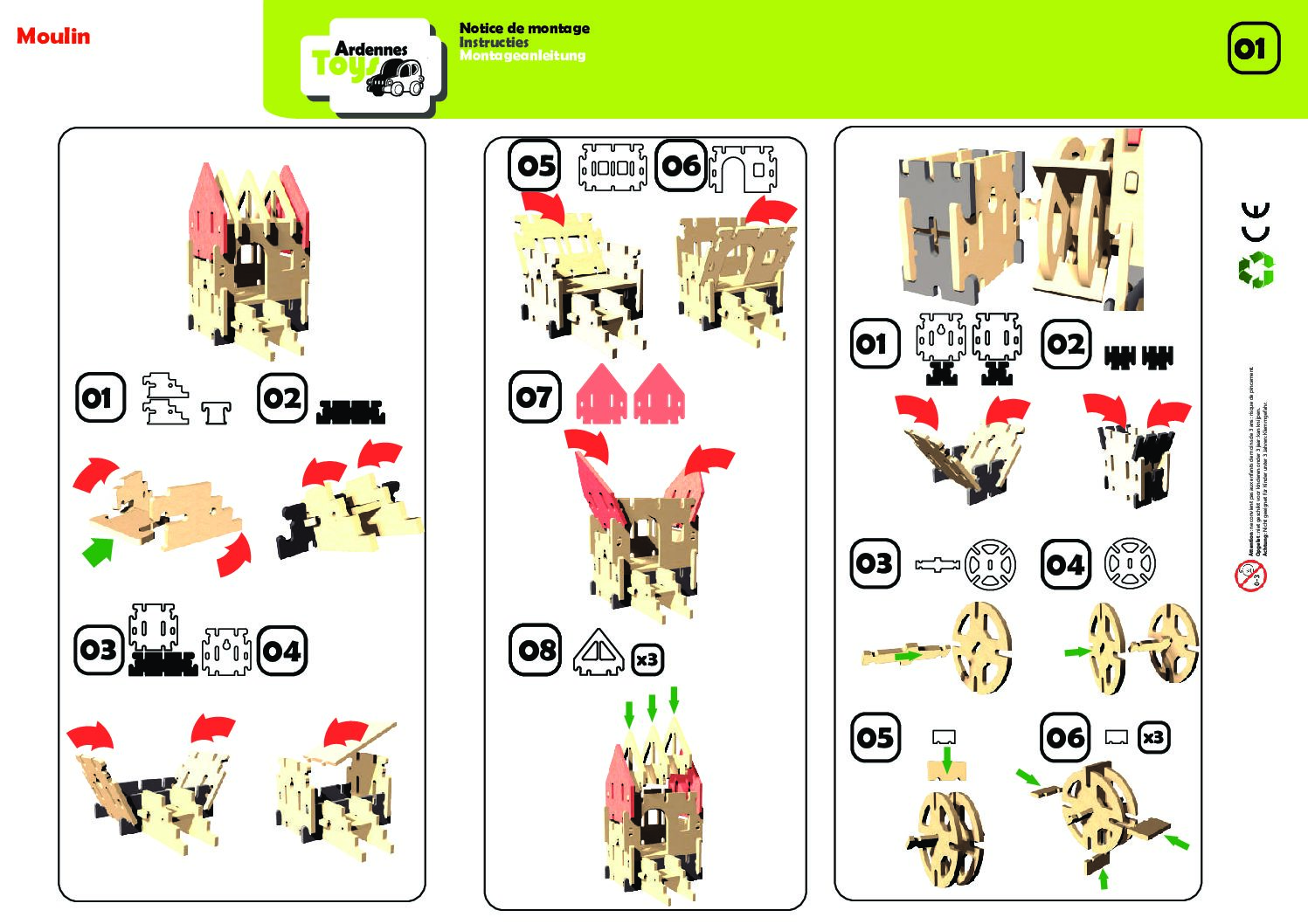 Moulin à eau d’Ardennes Toys. Les pièces s’assemblent sans clous ni vis. Quel look sympa pour ce moulin avec ses 28 pièces et sa roue qui tourne, c’est sûr il plaira à beaucoup de petites têtes blondes et complètera à merveille la gamme des châteaux de la collection My Castles. Designé et fabriqué en Belgique.