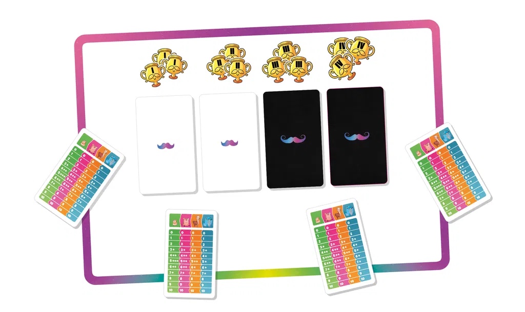 Moustache, c’est bien plus qu’un simple jeu de plis : c’est un concentré de stratégie, de chaos organisé et de surprises en cascade ! Ici, rien n’est figé : les équipes changent à chaque manche, les alliances se font et se défont, et de nouvelles règles viennent s’ajouter progressivement, transformant la partie au fil du temps.