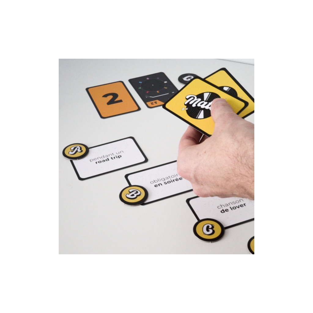 MusicMatch n’est pas un blind test ! Ici, aucune culture musicale n’est requise. Vous n’avez rien à reconnaître, rien à deviner sur l’artiste ou le titre : ce qui compte, c’est de connaître les autres joueurs. Le jeu récompense l’intuition et la connaissance des goûts musicaux des autres joueurs. C’est ce qui rend MusicMatch accessible à tout le monde, même à ceux qui pensent « ne rien connaître » en musique !