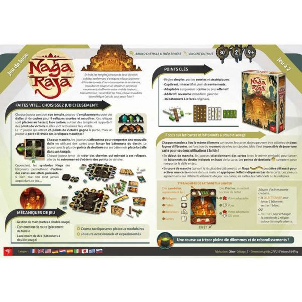 Incarnez un aventurier en quête des trésors de NagaRaja. Un système d’enchères vous permettra de récupérer les tuiles chemin afin d’y accéder.