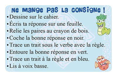 – Ne mange pas la consigne ! : gagner les cartes Défis en tapant sur la bonne consigne et en posant si besoin le bon crayon.