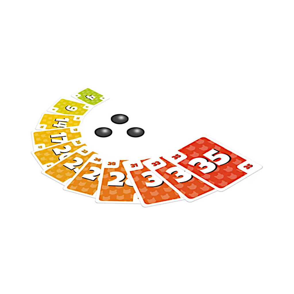 À votre tour de jeu, faites le choix d’accepter une carte ou de dire « Non merci ! » en posant l’un de vos jetons sur la carte refusée. C’est ensuite au joueur suivant de prendre une décision et éventuellement de récupérer votre jeton. Chaque carte acceptée fait perdre des points. Mais si vous reconstituez les suites, vous ne perdez que la valeur de la plus petite carte de la suite. Gérez au mieux vos jetons, car, de toute façon, il vous faudra accepter des cartes.