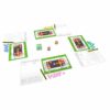 Contenu : 1 bloc de feuilles « château » (recto/verso), 4 sets de 10 jetons colorés, 4 plateaux individuels recto/verso, 2 dés, 36 cartes Invités (16 cartes « Petits Bâtisseurs », 20 cartes « Grands Architectes »).