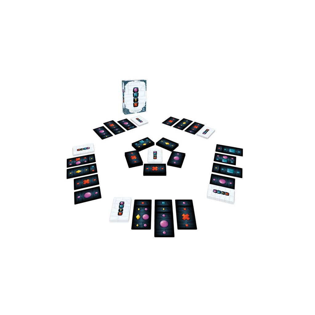 Comment jouer : À votre tour, choisissez une Gemme visible sur les pioches centrales et prenez une carte comportant cette gemme ainsi que toutes les cartes adjacentes et consécutives avec la même gemme. Placez les cartes récupérées devant vous sur vos collections.