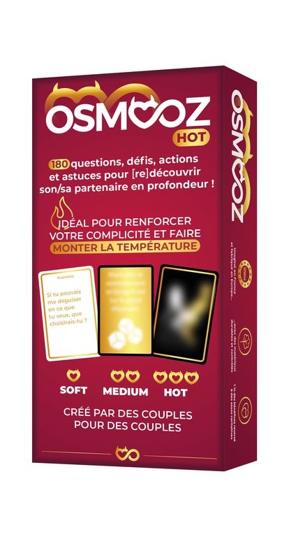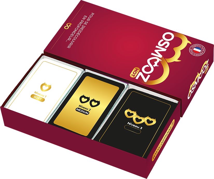 Osmooz Hot … De l’amour en cartes et du piment pour votre couple ! Installez-vous confortablement avec votre partenaire et redécouvrez vous en profondeur à travers 3 niveaux d’intensité.