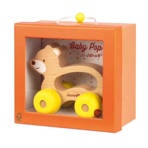 Ce jouet en bois Janod pourra être rangé dans sa belle boite, avec une cale imprimée pour le maintenir en place. Avec sa poignée en nylon, votre bébé pourra emmener son Ours à promener chez Papy et Mamie et continuer son éveil en douceur.
