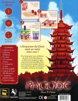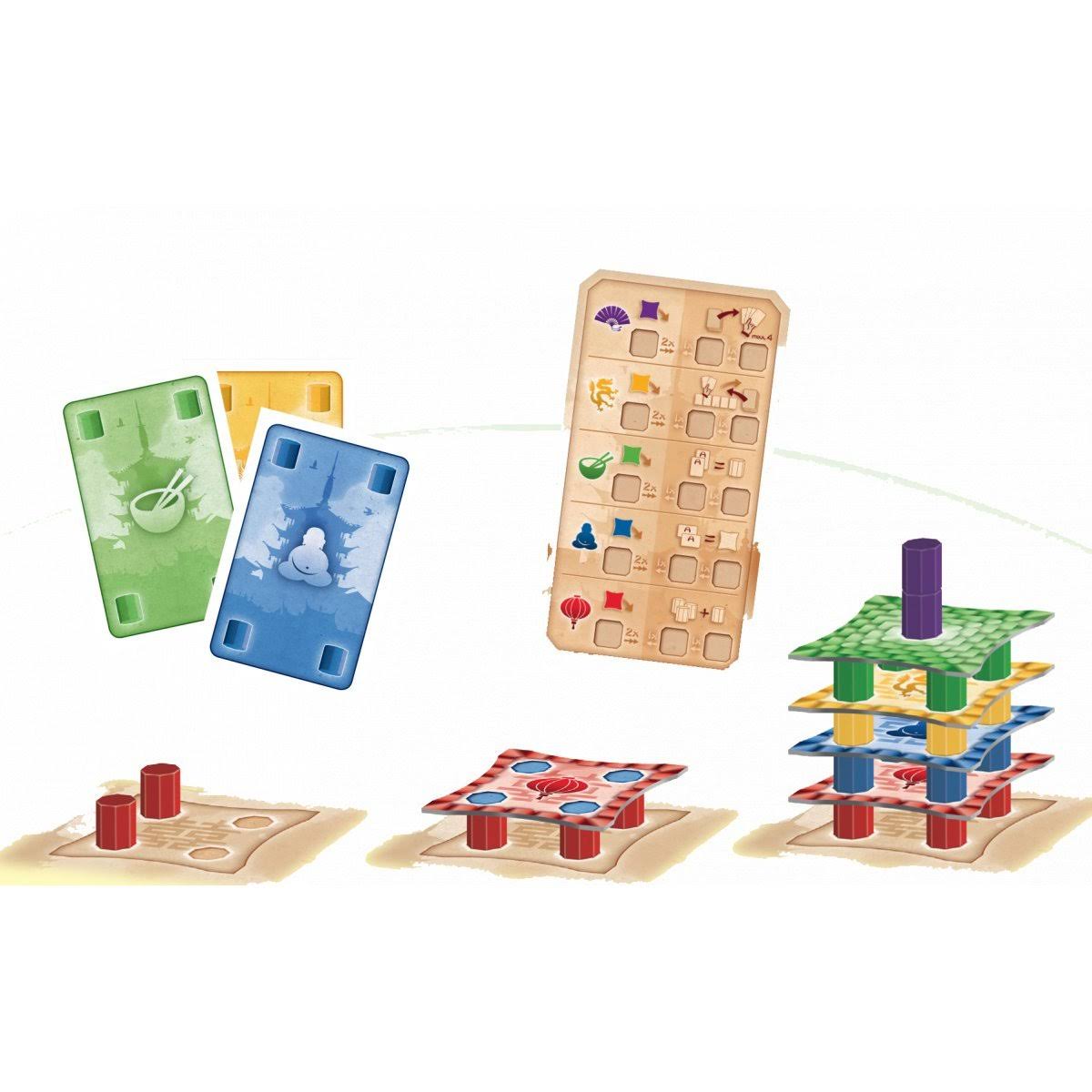 C’est une journée pas comme les autres dans l’ Ancienne Chine : l’Empereur a annoncé une visite officielle au sein de votre province ! Afin de l’honorer comme il se doit, vous avez choisi de lancer la construction des plus impressionnantes pagodes possibles. Une fois que trois pagodes auront été construites entièrement, le joueur possédant le plus de points sera déclaré vainqueur !